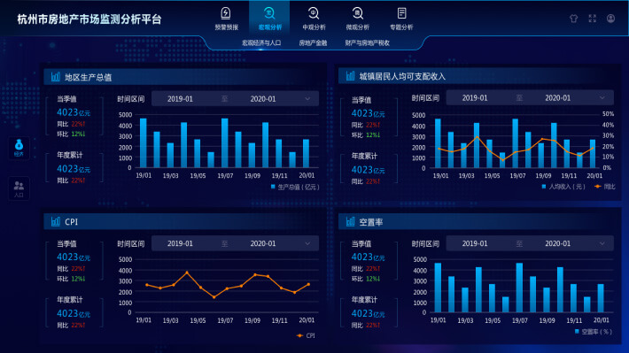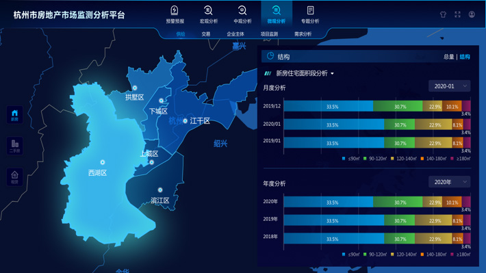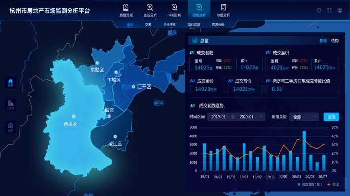 城市大腦房管系統,涵蓋“1個房屋主題庫、5大監管平臺+N項服務”。建設對內跨部門數據交換共享、對外數據開放的信息融合體系,創新城市大腦房管業務方面的應用,集房地產行業智慧宏觀決策、精準監管、惠民服務于一體。其中核心決策管理平臺,針對商品住房、租賃住房、保障性住房三個方向,從“決策能力提升”和“監管能力提升”兩個要素出發進行統籌。通過分析不同時間、空間維度的房屋現狀、人群結構、供需狀況等情況,為科學決策提供有效支撐。